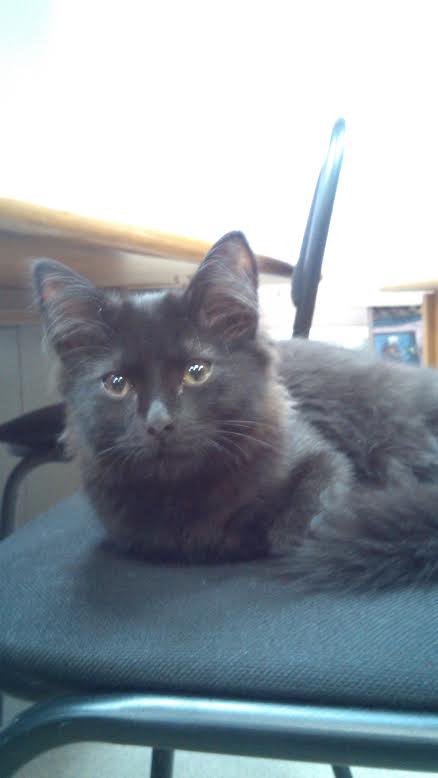 После того, как в страшной схватке с собаками трагически погиб наш любимый кот Василий, завершился конкурс на замещение вакантной должности школьного кота. Критерии были очень жесткие (размер когтей, форма ушей, цвет глаз, длина ворса). Решение принято. На довольствие поставлен новый житель нашей школы - котенок Плюс, так его назвали дети, которые шли мимо него с дополнительных занятий по математике.